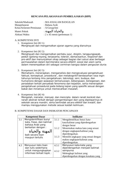 Download Rpp Bahasa Arab 1 Lembar - Contoh Rpp Bahasa Arab Mts Kelas Viii - Berikut rpp 1 lembar lengkap mata pelajaran bahasa arab kelas xii k13 revisi.